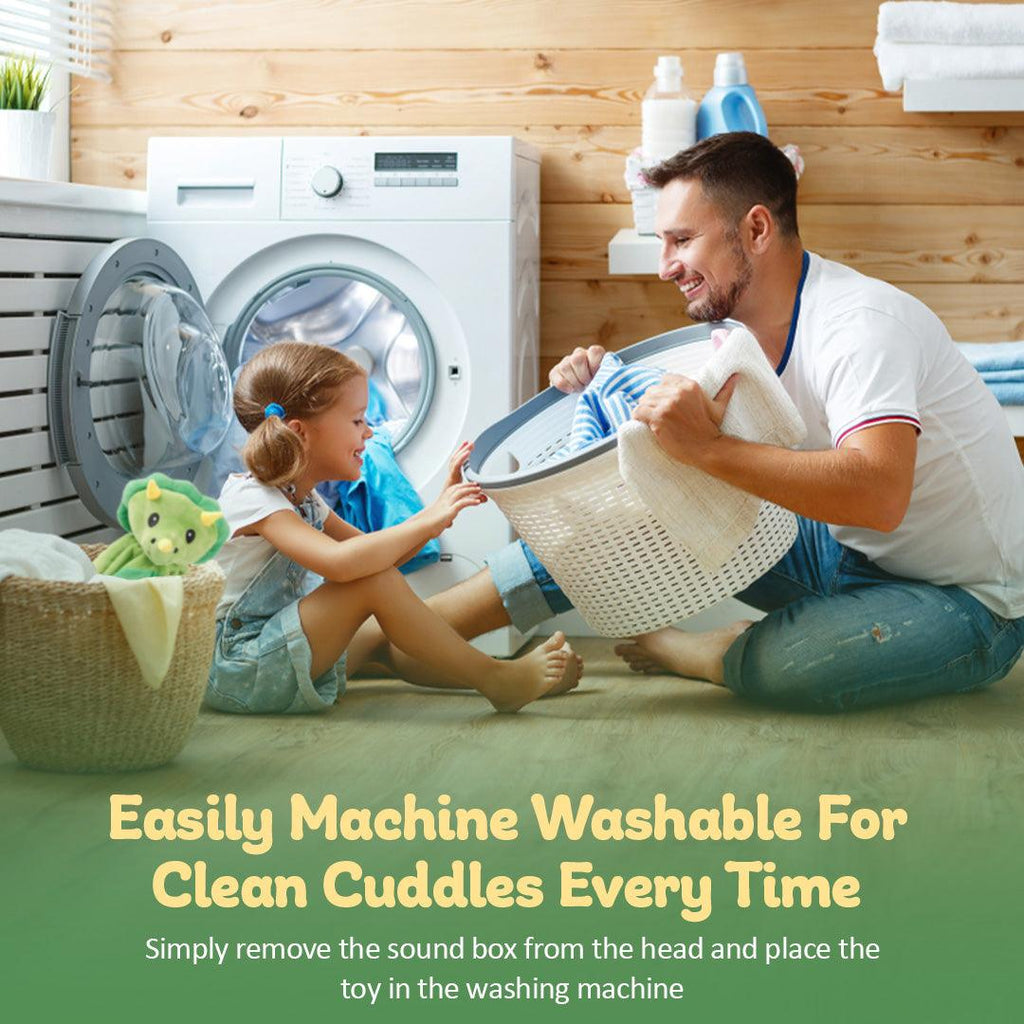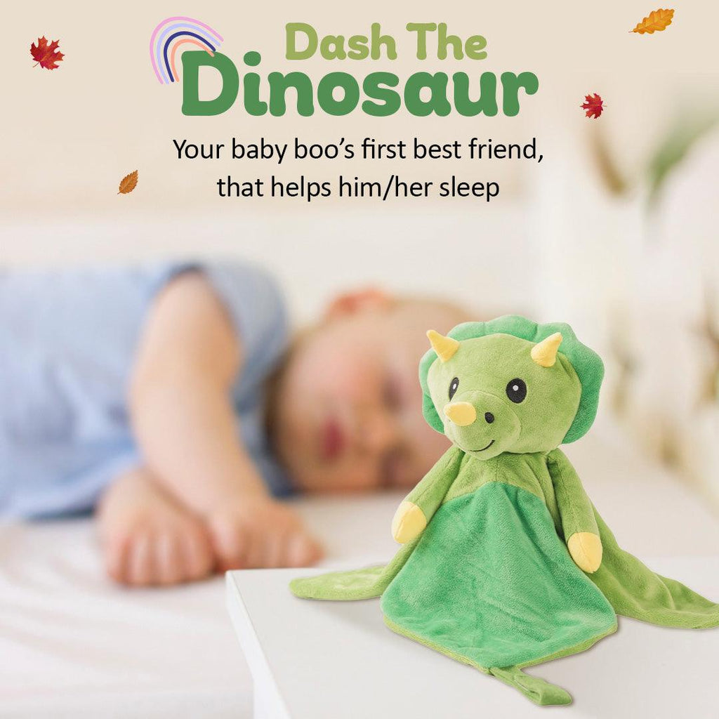Meet Dash the Dinosaur - Our baby soother that allows your child to play with the stuffed animal and then gently drift off to sleep with the built-in sound machine.